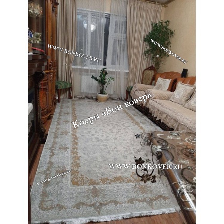 Шикарный Иранский Ковер Для Гостиной Дизайн 30670 наполняет интерьер гостиной теплом и уютом, гармонично сочетает в себе изящество и стиль. Он выполнен из износостойких материалов, комфортный и долговечный.